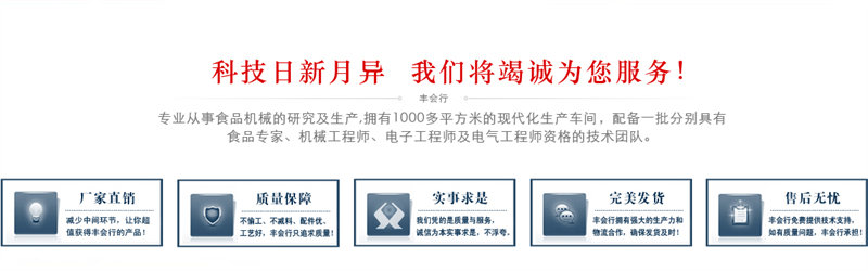 廣東豐會行智能裝備有限公司,廣州永豐廚具設 備 于 1997年 廠辦 , 專業從事食品機械的研究及生產。本廠擁有1000多平方米的現代化 生產車間,配備一批分別具有食品專家,機械工程師,電子工程師 質的產品生產及售后服務的專業隊伍,從而為客戶服務提供優質的 及電氣...